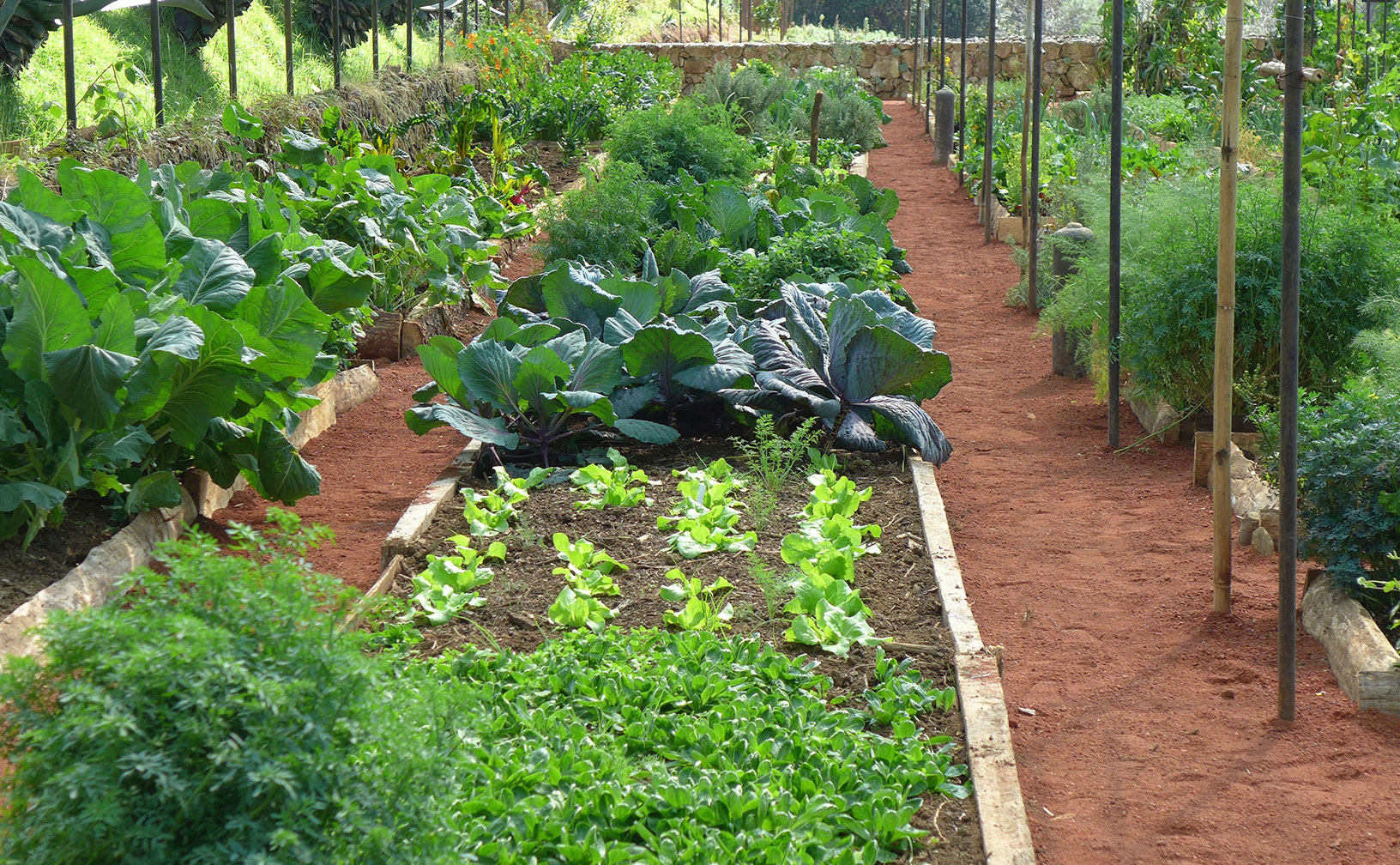 Durante los primeros tres años todo fue nutrir el suelo con compostas y abonos verdes; se trataba de devolver la vida bacteriana y fúngica a aquel terreno árido que después nos permitiría cultivar sin ningún tipo de agroquímicos ni pesticidas. Así, hace dos décadas comienza a escribirse un capítulo clave en esta historia: el cultivo de alimentos y plantas medicinales en una tierra fértil y orgánica.